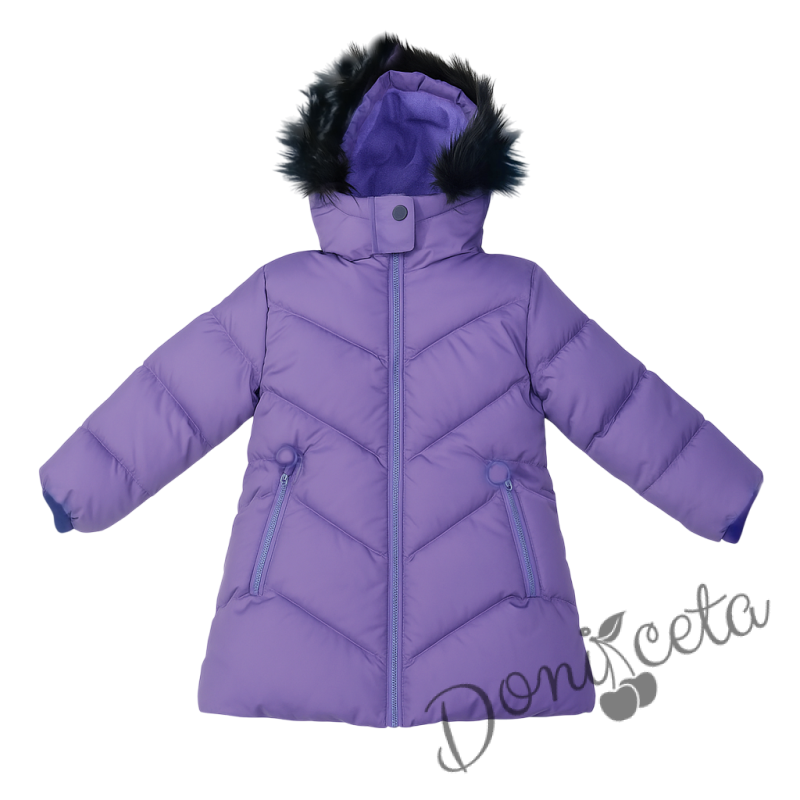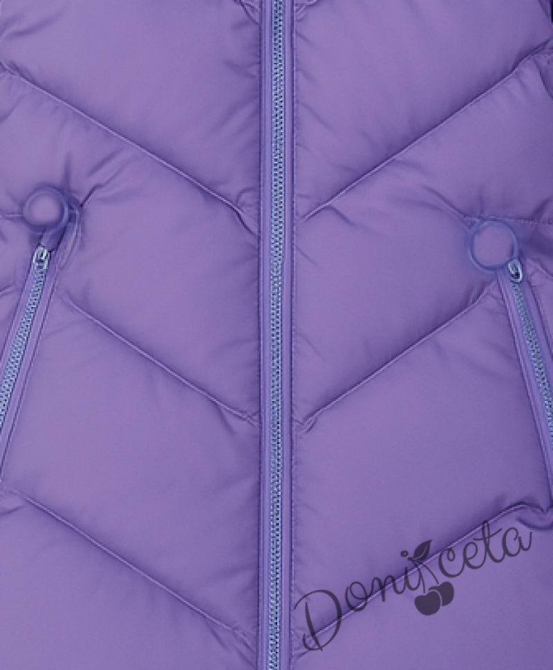 Детско зимно яке за момиче с качулка в лилаво