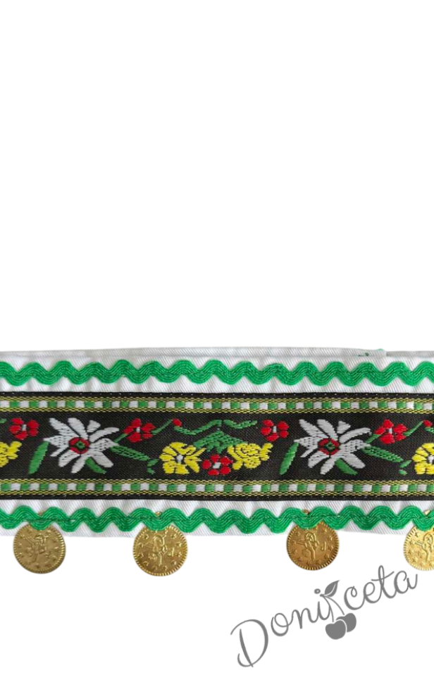 Дамска или детска народна носия 57 с косичник за глава-риза, пола, елек и черна престилка с фолклорни/етно мотиви