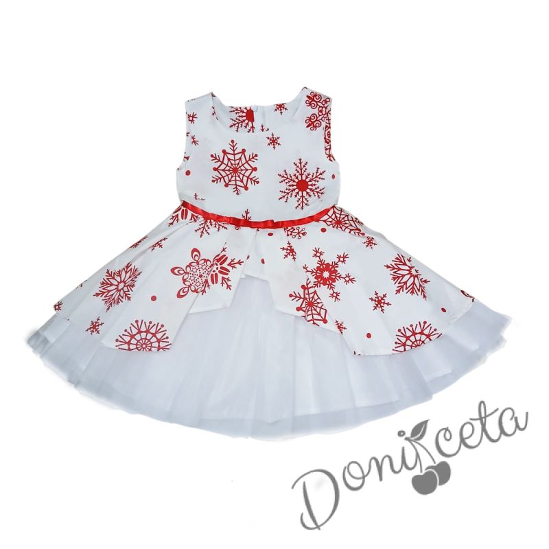 - Изключително красива и нежна рокля в бяло на червени снежинки с богат тюл и коланче.