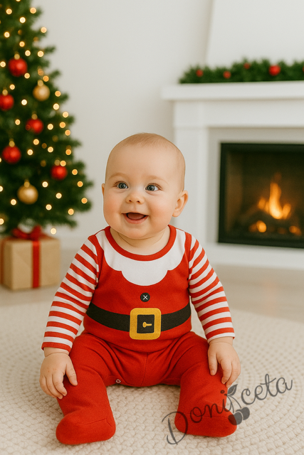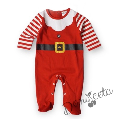 Коледен бебешки гащеризон в червено с райе за момче или момиче
