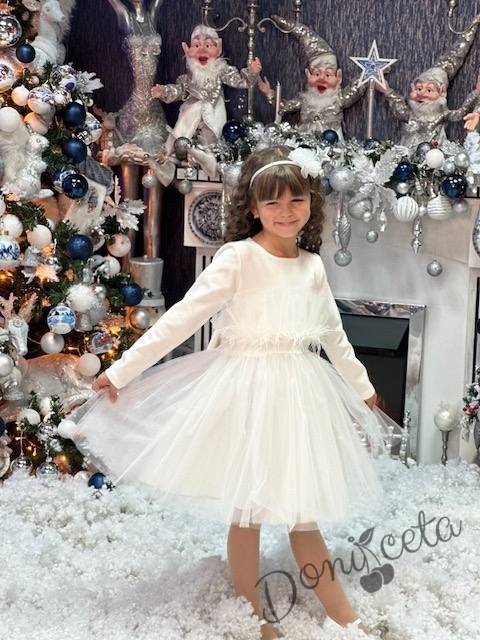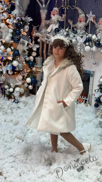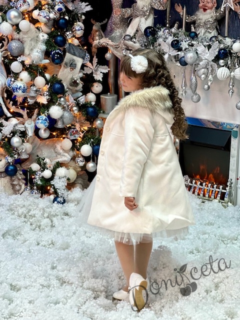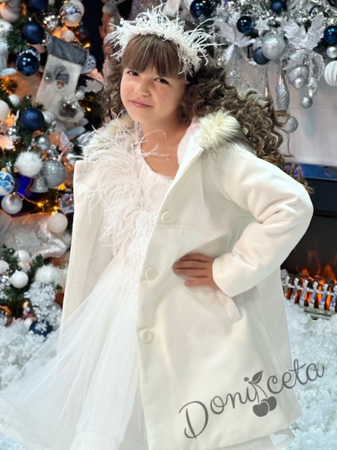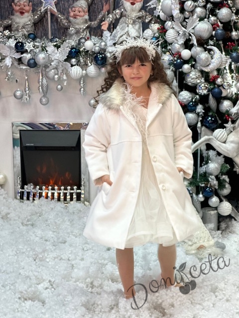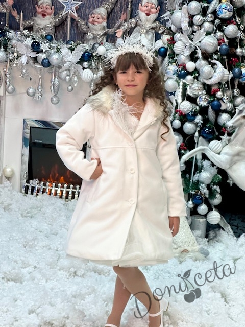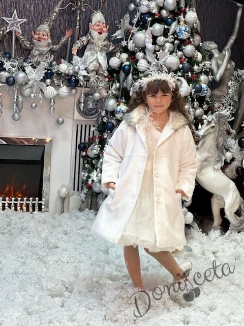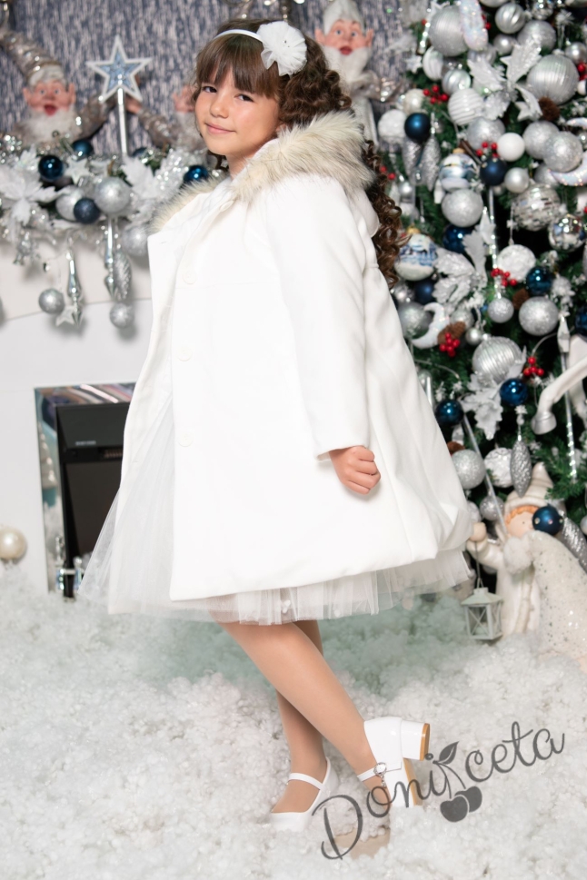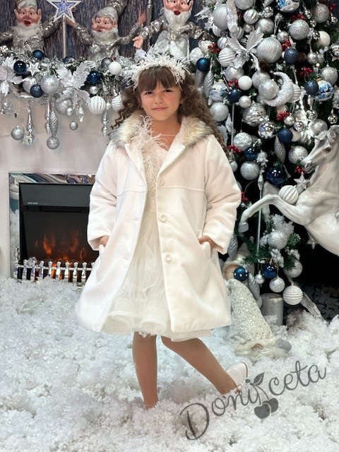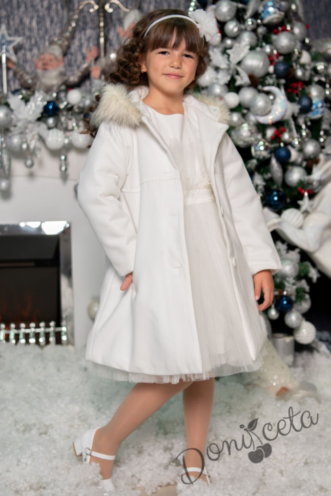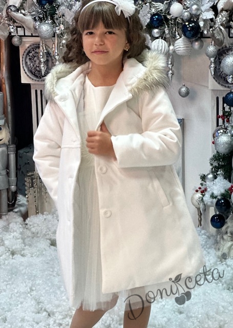 Начало МОМИЧЕТА Комплект от рокля със зимно детско палто в бяло с качулка и джобчета