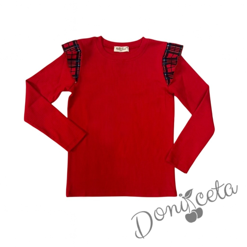 Блузата с дълъг ръкав е червена с къдрички каре, която добавя допълнителна доза сладост и елегантност. Тя е удобна и практична, идеална за прохладните дни.