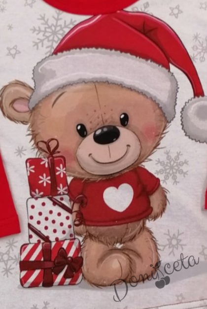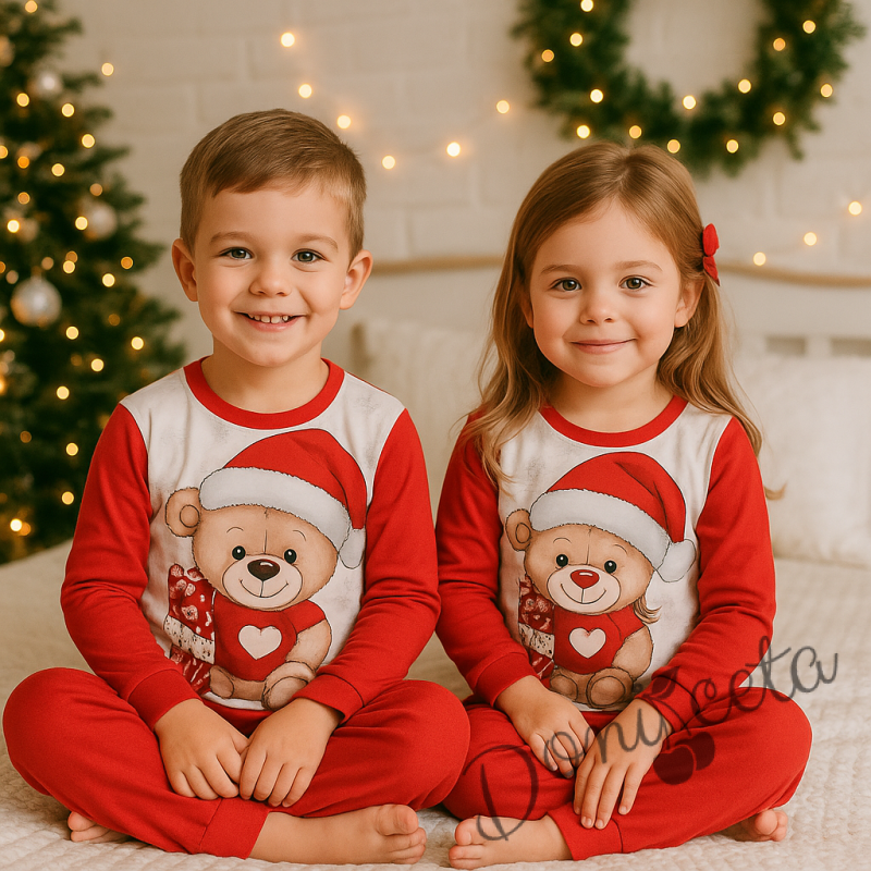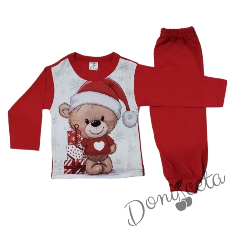- Прекрасна памучна коледна пижамка в червено с мече.
