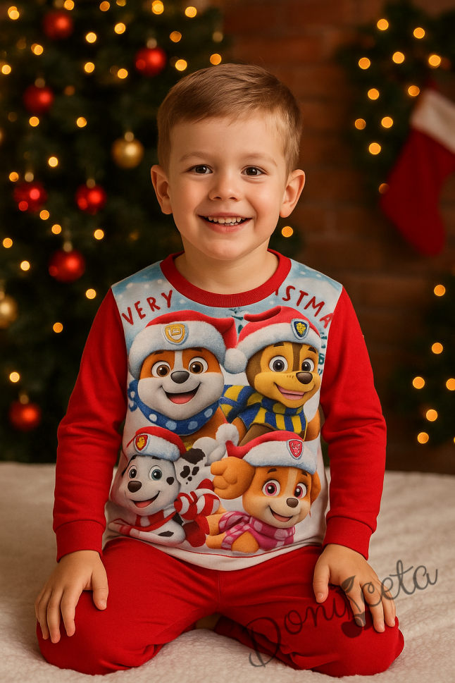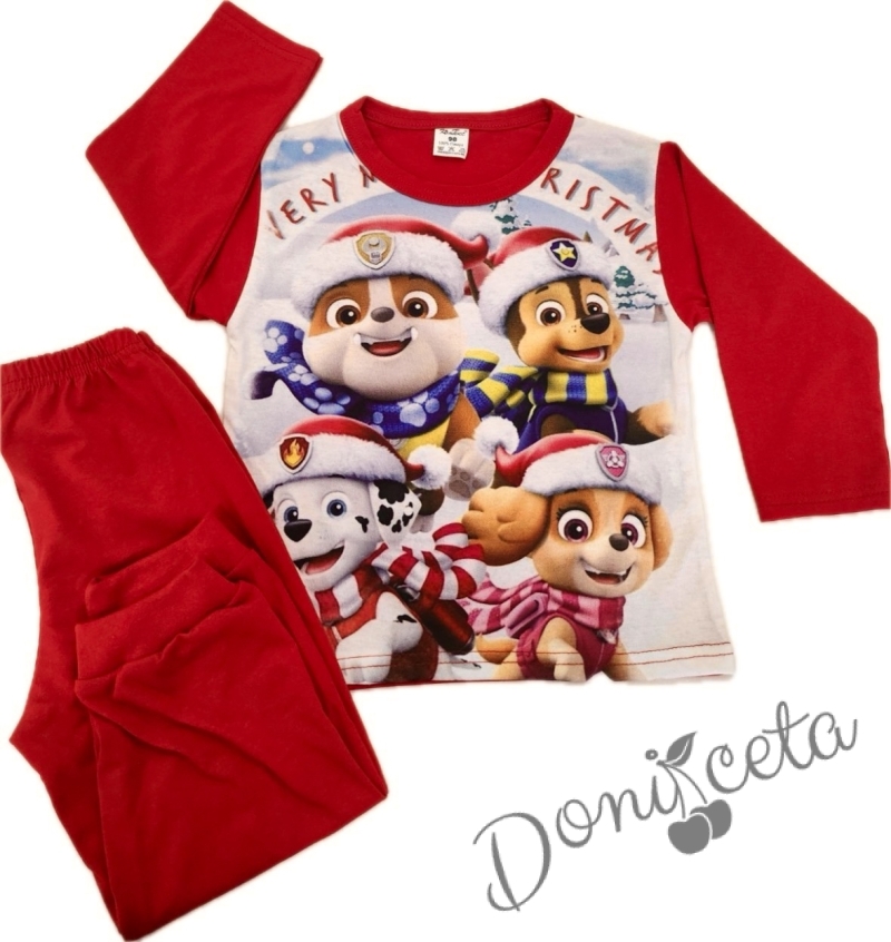 - Прекрасна памучна коледна пижамка в червено с кучета