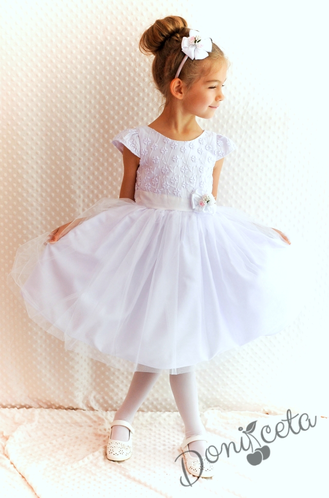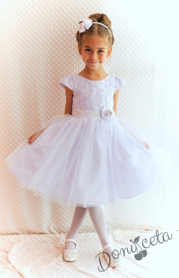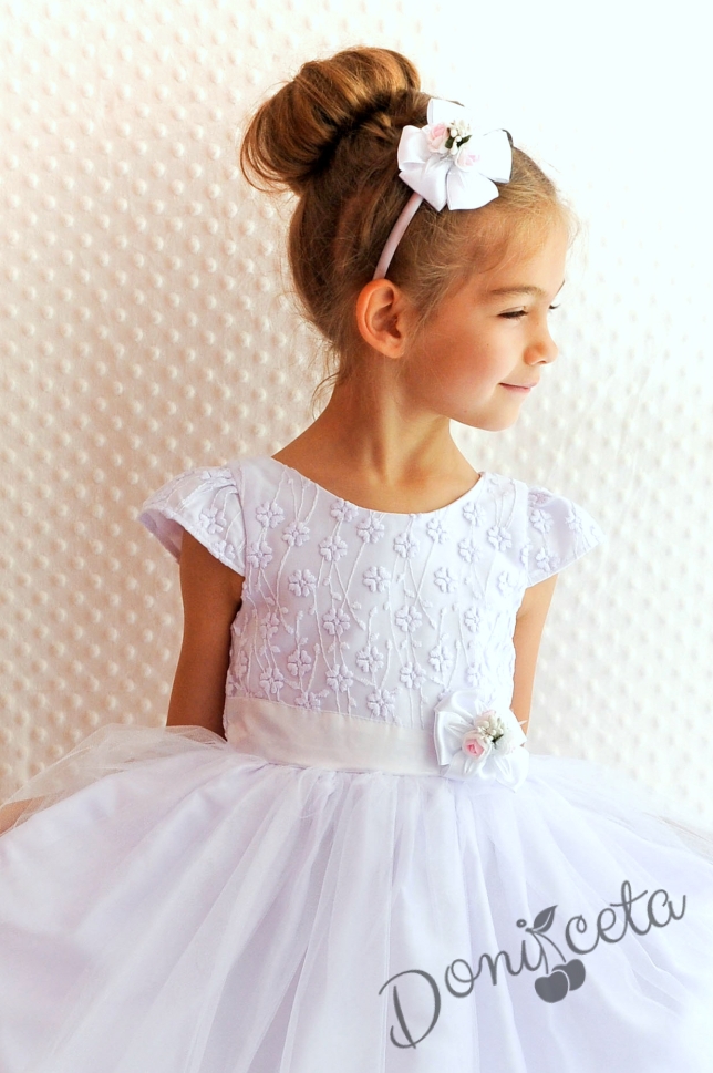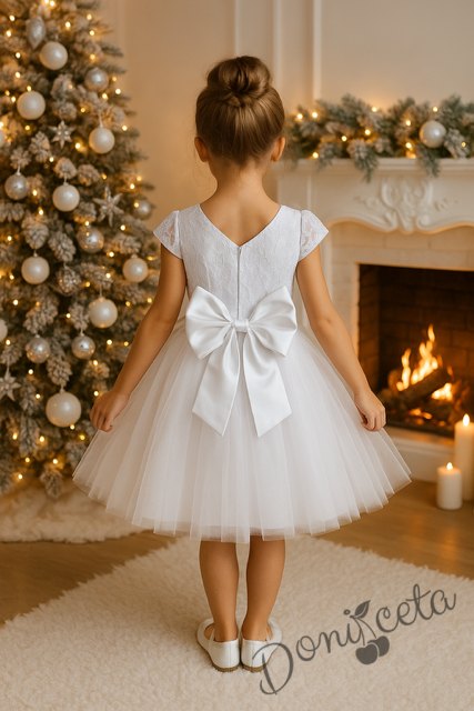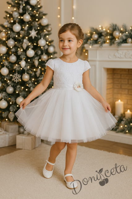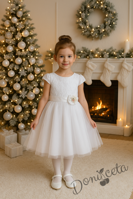 Официална детска рокля в бяло Златина от дантела и тюл 278БТ от колекция Снежина