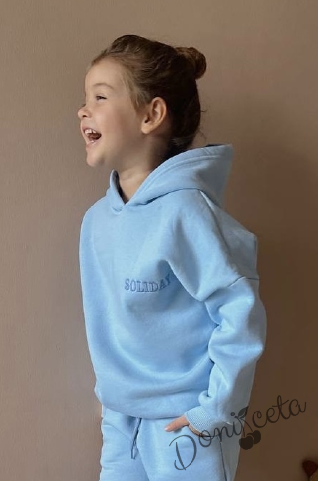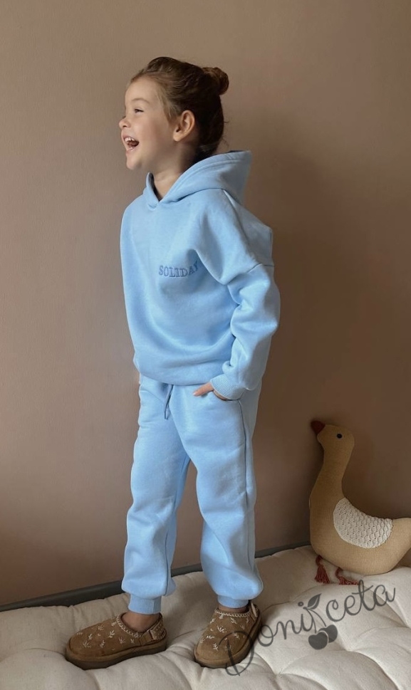 Детски спортен ватиран комплект за момиче от блуза и панталон в светлосиньо