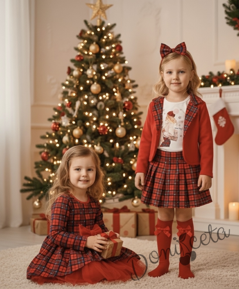 Детско сако за момиче в червено и каре с къдрици и панделка отзад 9700192