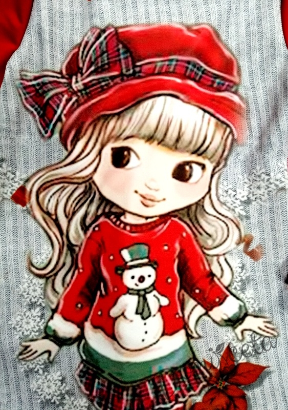• Весела зимна рокличка с дълъг ръкав в червено с картинка на момиченце.