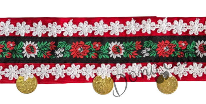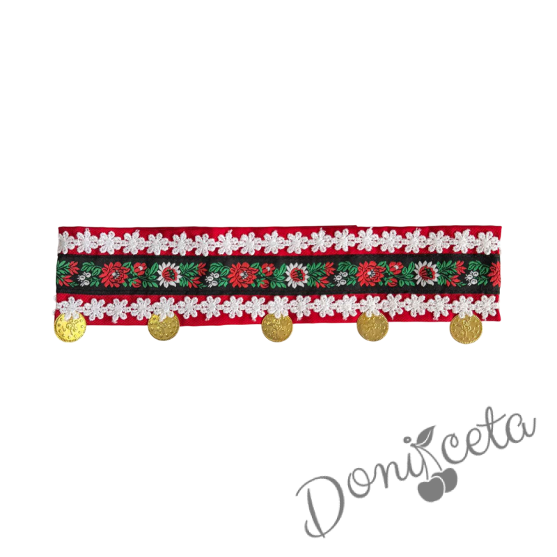Дамска или детска народна носия 101 с косичник за глава-риза с бродерия, пола, елек,червена престилка с фолклорни/етно мотиви и косичник
