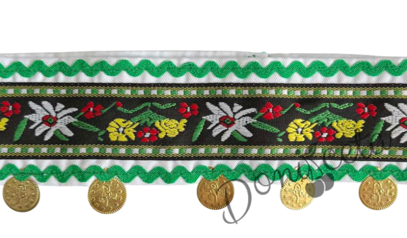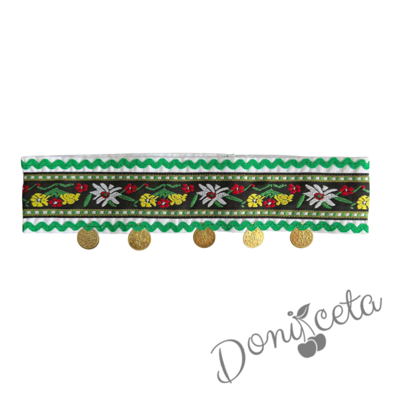 Дамска или детска народна носия 102 с косичник за глава-риза с бродерия, пола, елек, черна престилка с фолклорни/етно мотиви и косичник