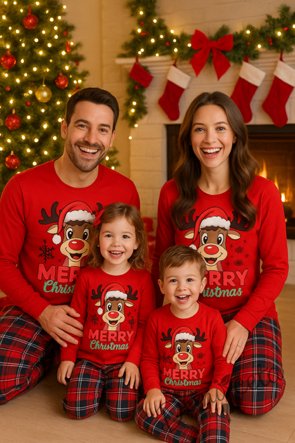 - Прекрасна памучна коледна пижамка в червено с коледна картинка
