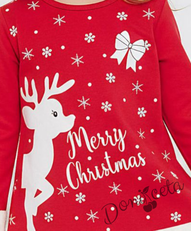 Детска коледна неватирана блуза в червено с елен и надпис Merry Chrismas