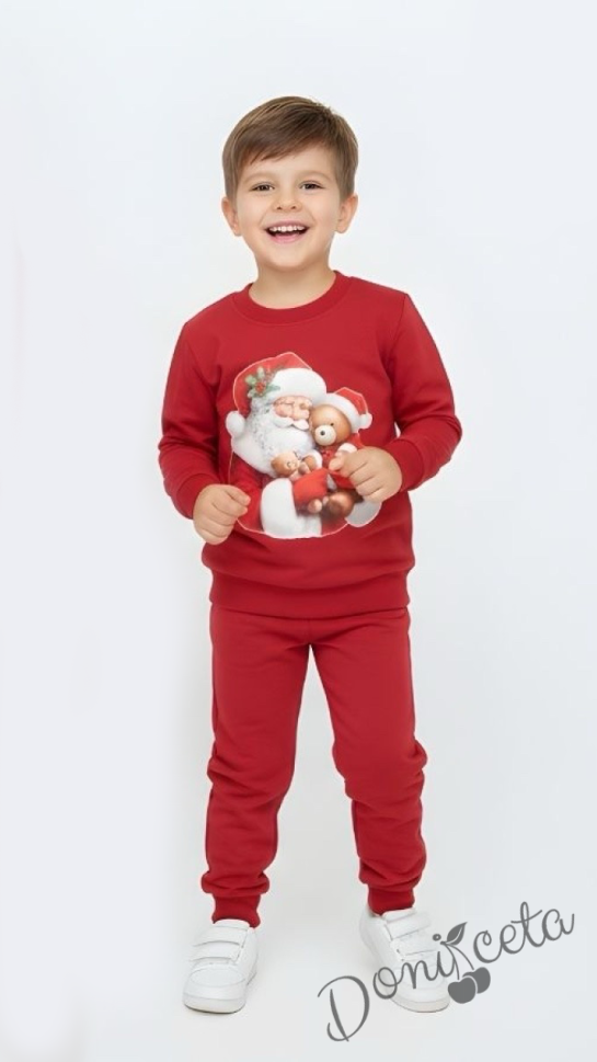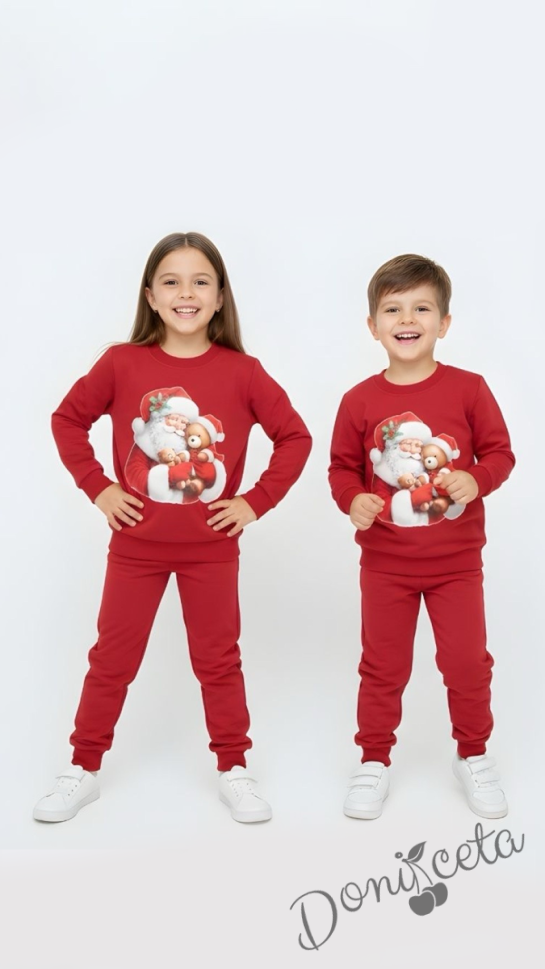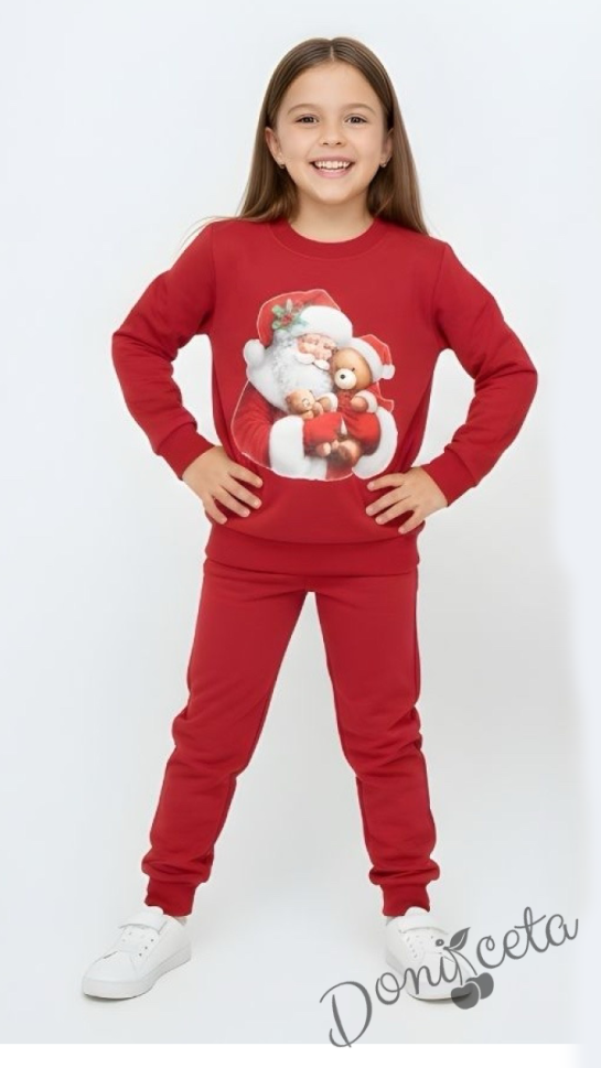 Комплектът включва мека г блуза с дълъг ръкав и удобен панталон в коледен червен цвят.