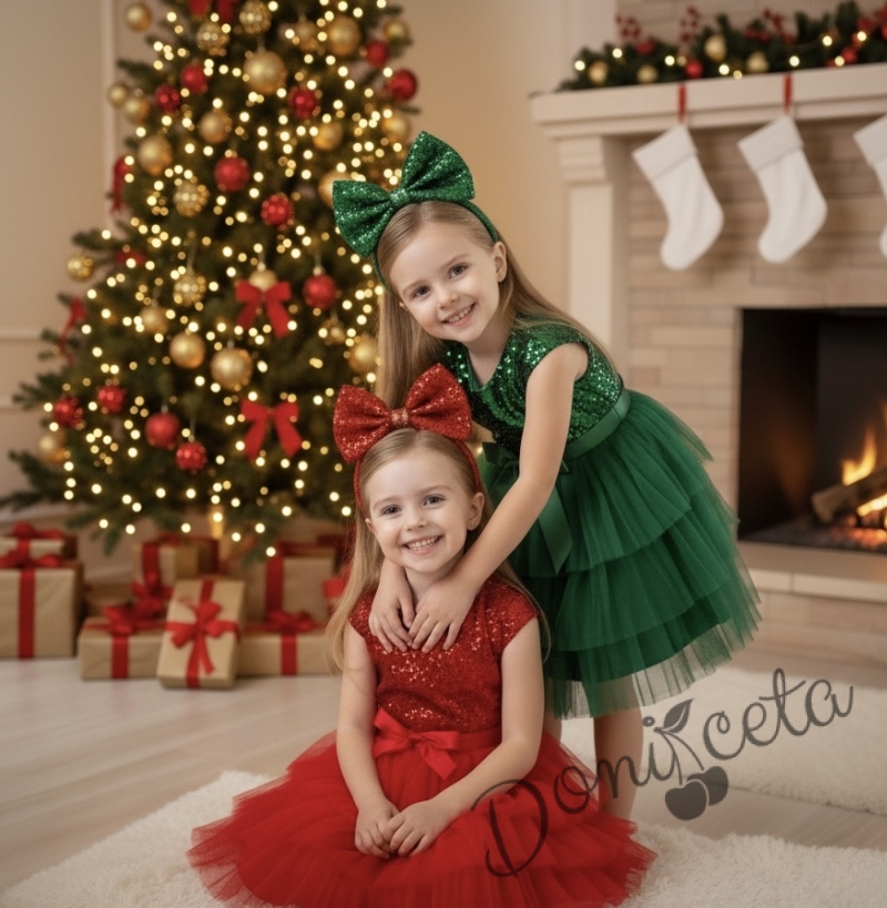 Начало МОМИЧЕТА Детска официална рокля Хава в зелено от пайети и тюл на пластове