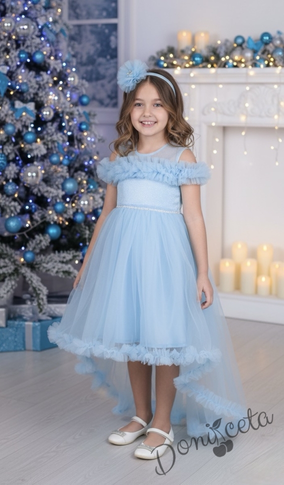 Официална детска рокля с шлейф с тюл в светлосиньо Ария