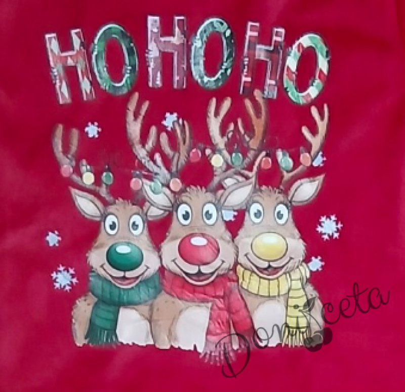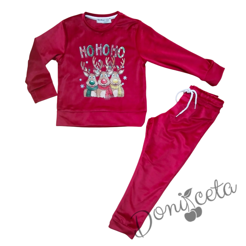 Комплектът включва мека блуза с дълъг ръкав и удобен панталон в коледен червен цвят.