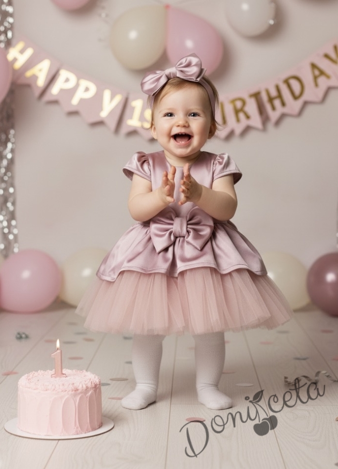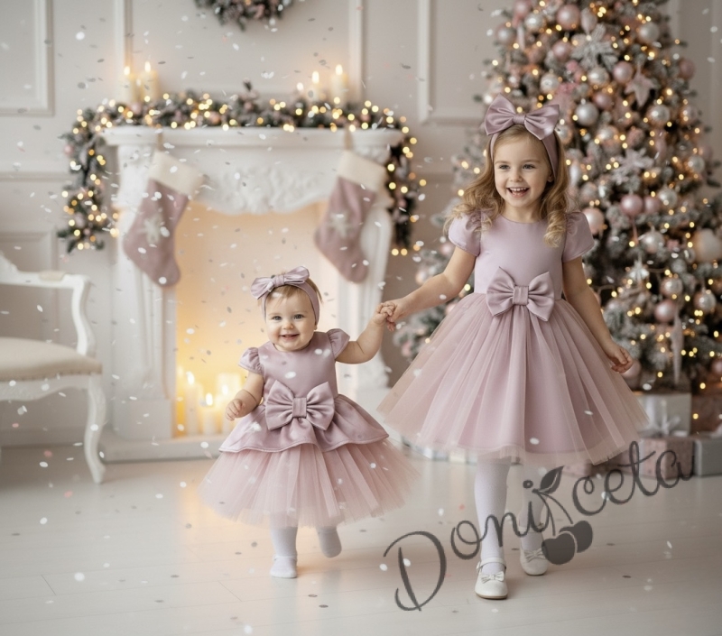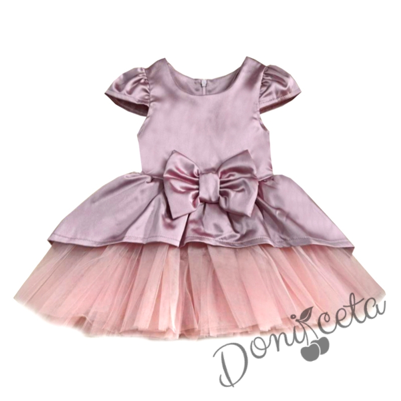 Официална парти рокля с къс ръкав и тюл в пепел от рози Надежда