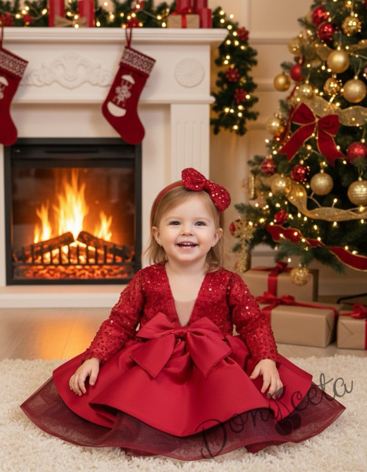 Официална детска рокля с дълъг ръкав Мира в червено с пайети от колекция Червеника