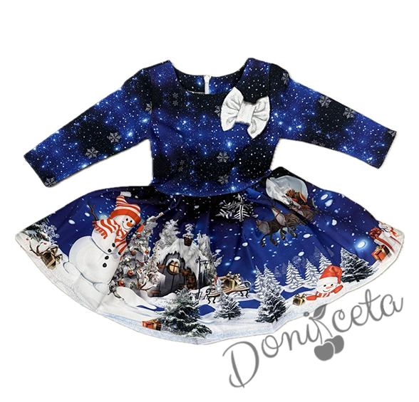Коледна бебешка рокля с дълъг ръкав в синьо с коледни мотиви