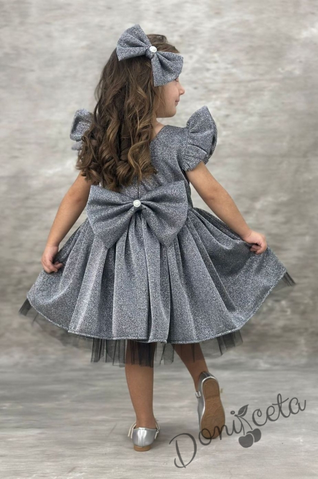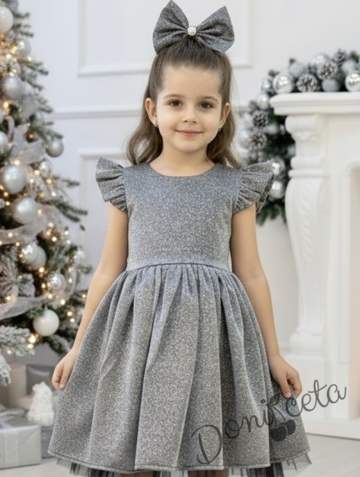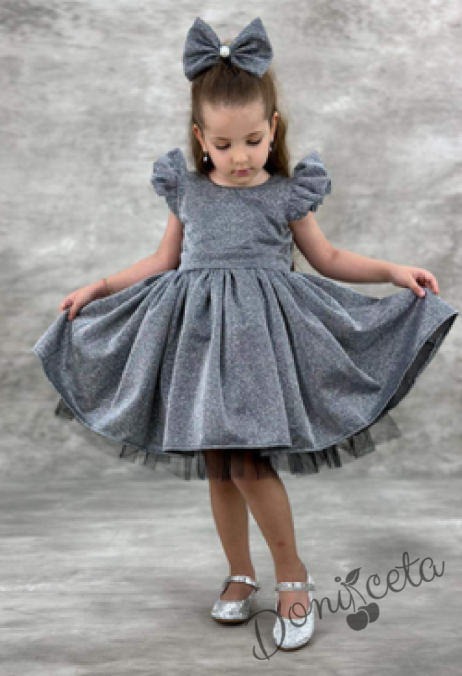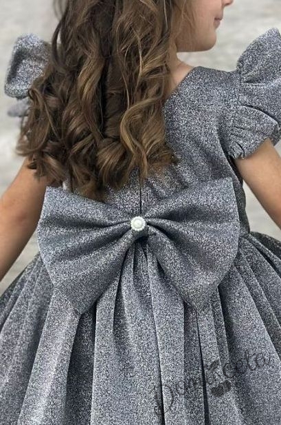 Официална детска рокля с къс ръкав с блясък Балеа в сребристо