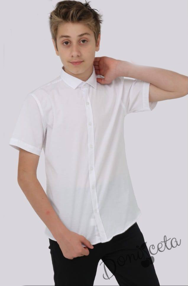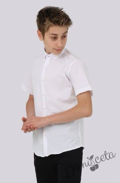 Начало МОМЧЕТА Детска официална изчистена риза за момче с къс ръкав в бяло