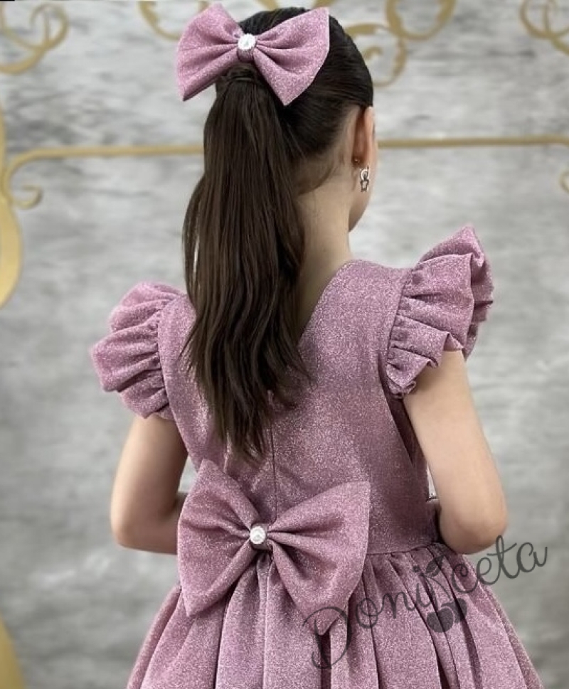 Начало МОМИЧЕТА Официална детска рокля с къс ръкав с блясък в пепел от рози с тюл с панделка и фиба с панделка Балеа