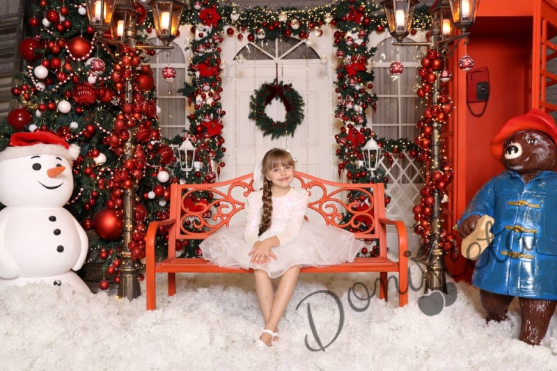 Официална детска къса рокля Анджела в бяло с тюл без ръкав от колекция Снежина