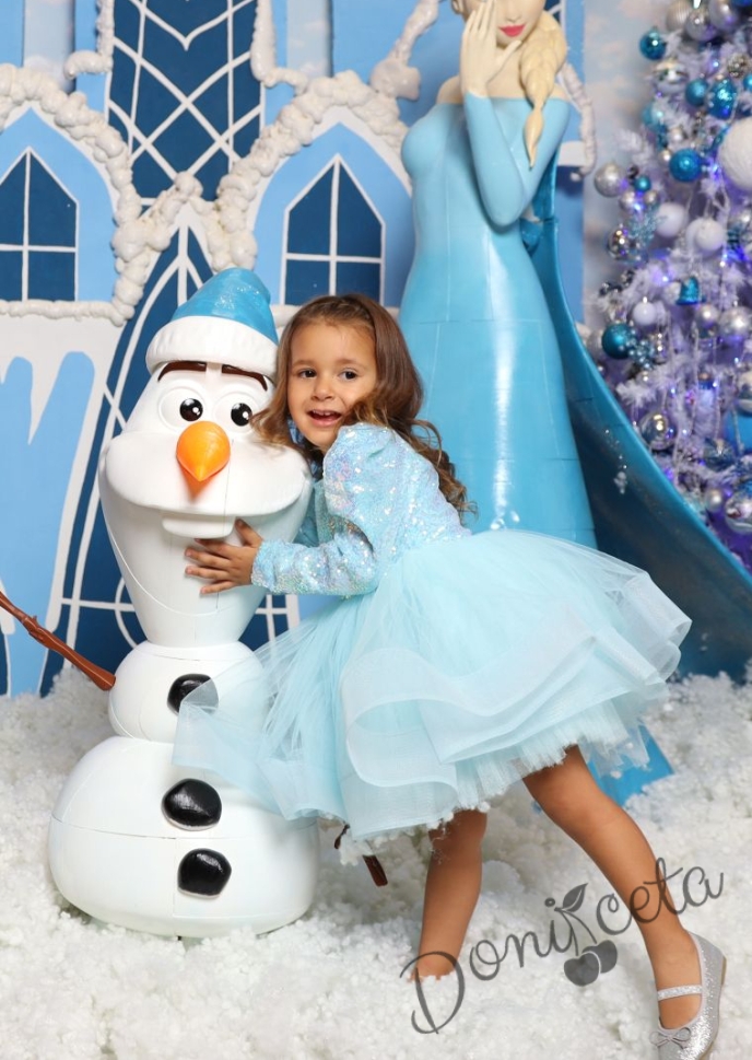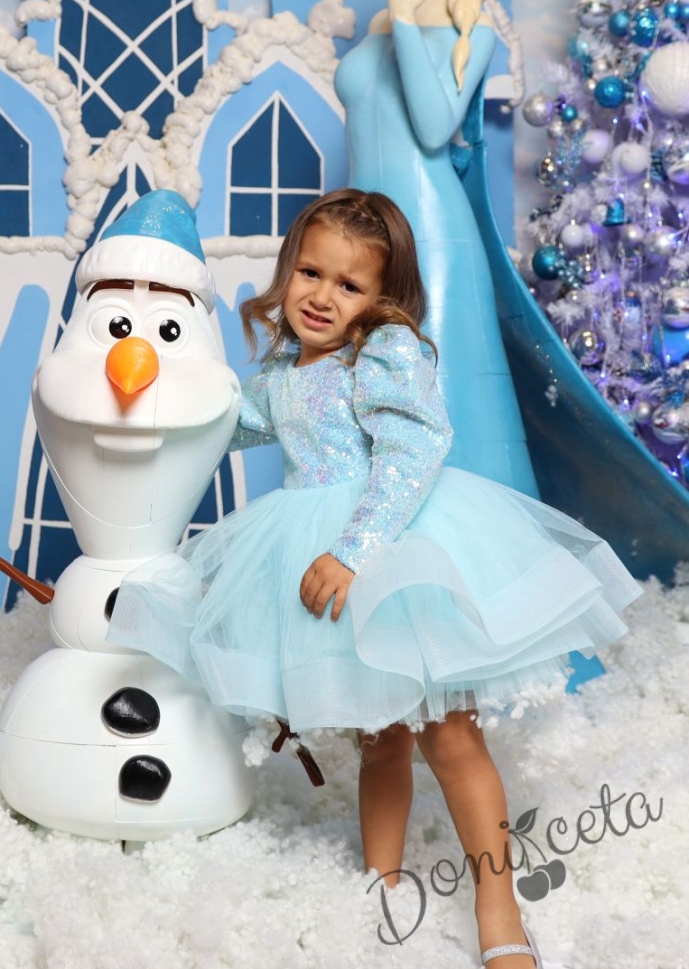 Детска официална рокля Хава в светлсиньо от пайети и тюл на пластове