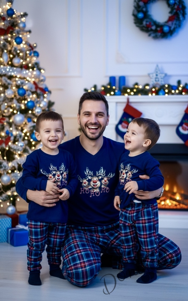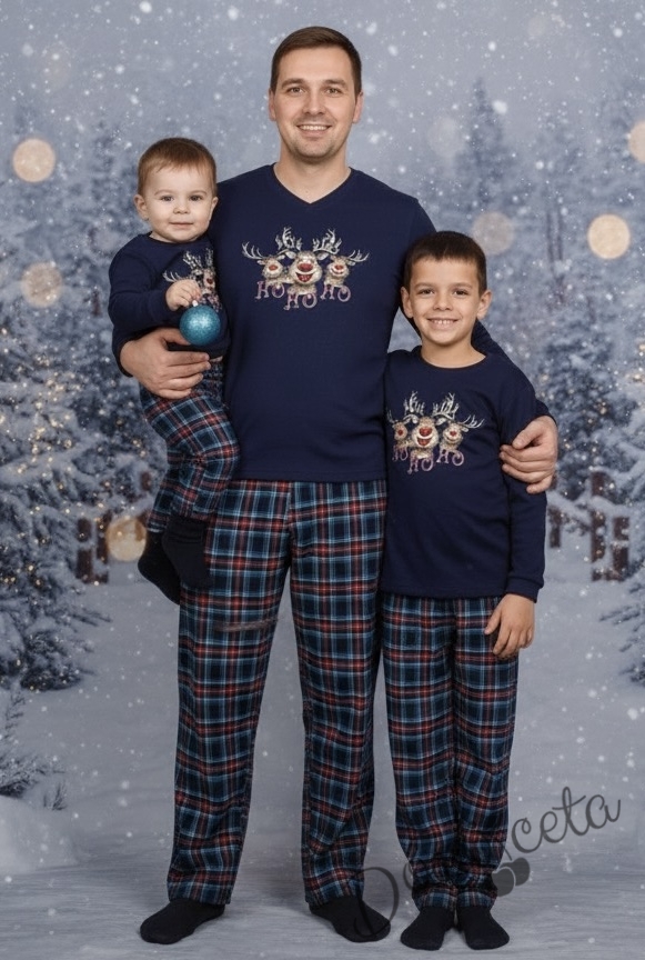 Мъжка коледна пижама Блитцен в тъмносиньо с весели еленчета и надпис