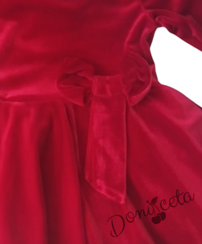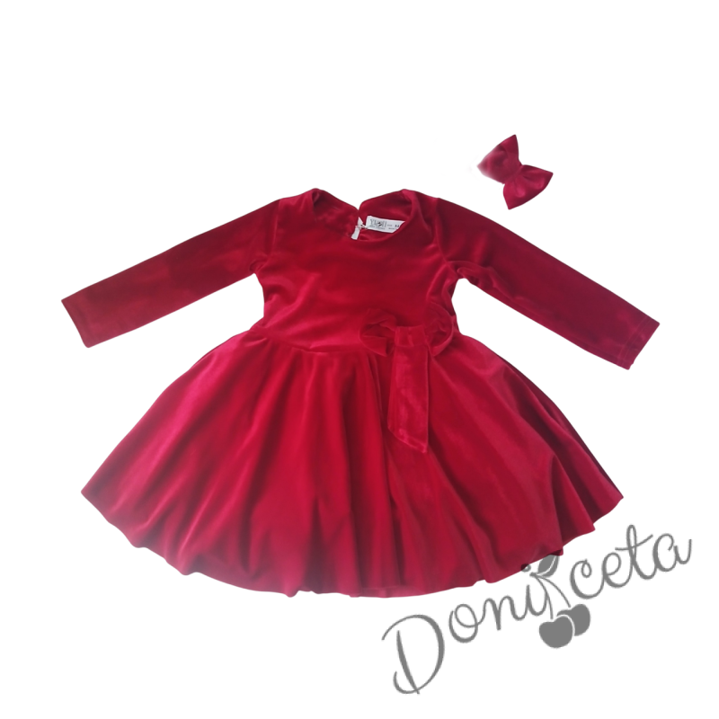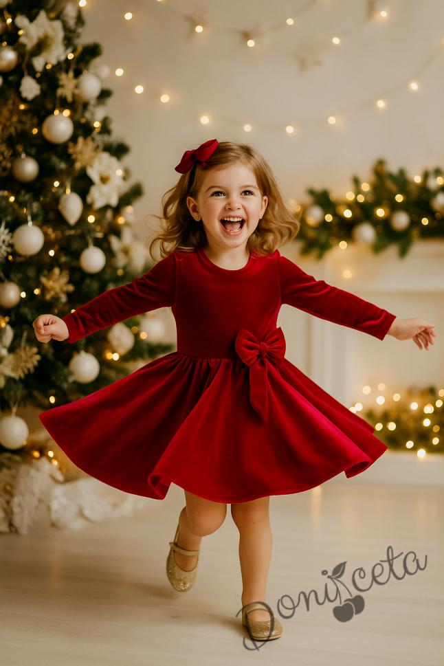 Детска коледна рокля в червено с панделка Елиса и фиба за коса