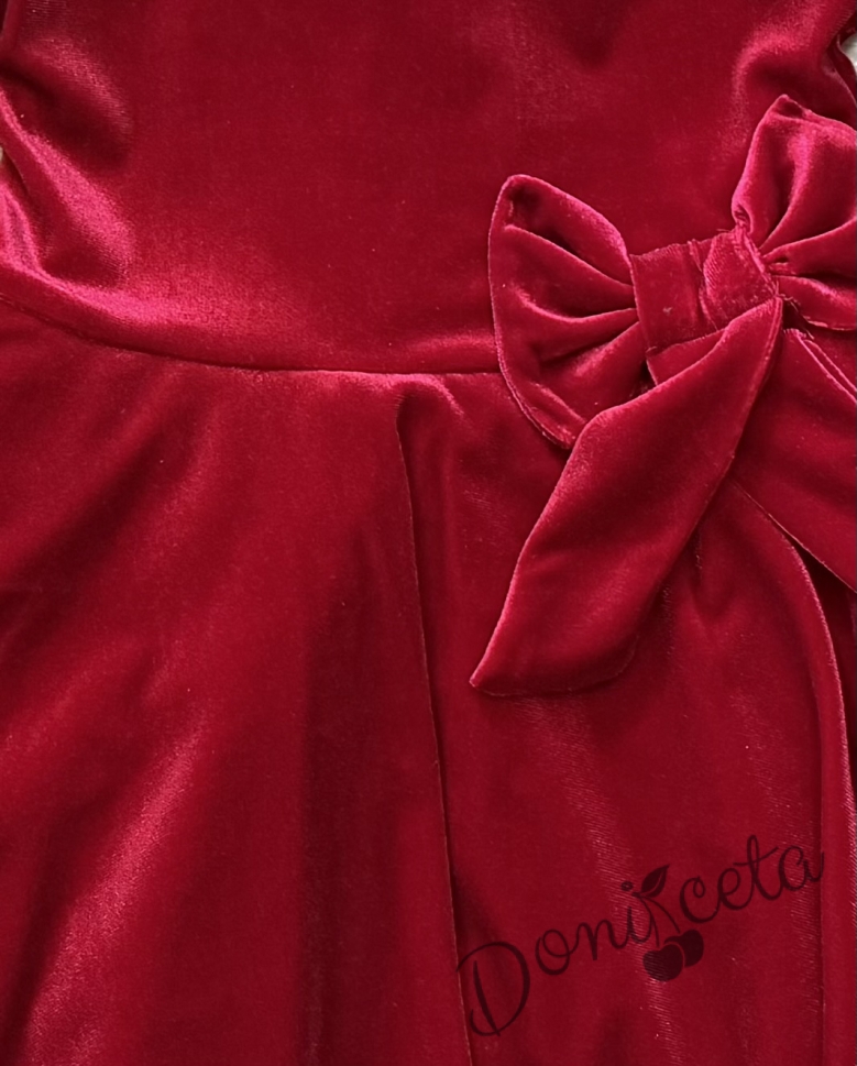 Детска плюшена коледна рокля в червено с панделка Елиса и фиба за коса
