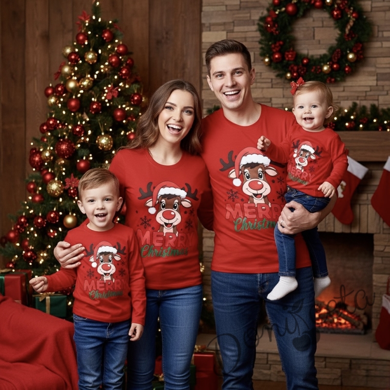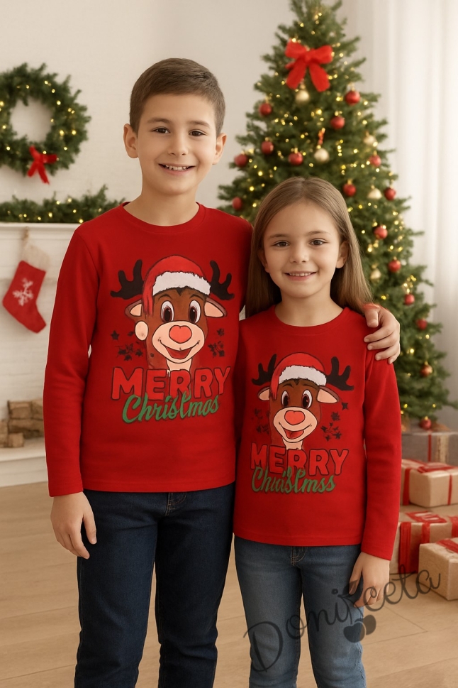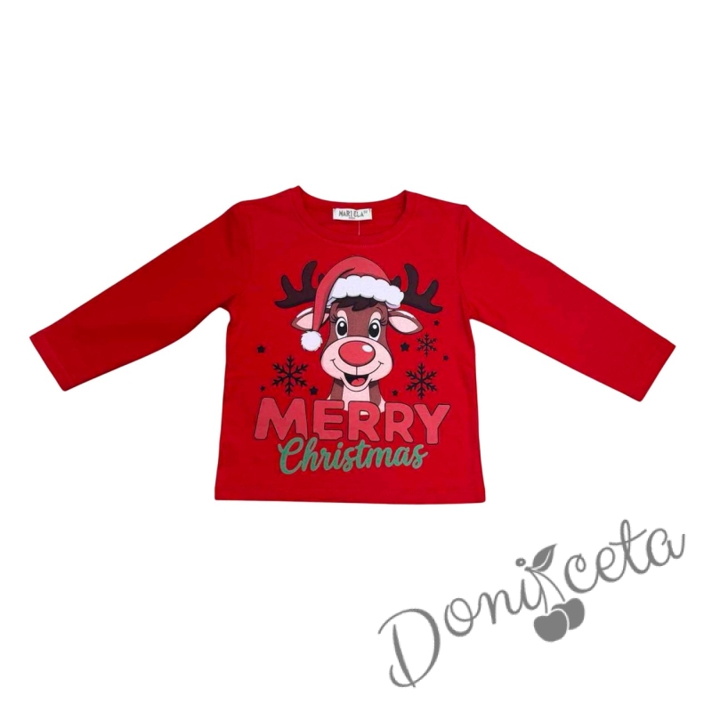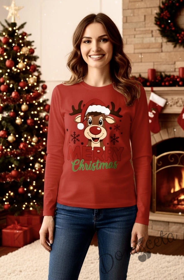 - Подарете си удобство и настроение с изключително мека и нежна блузка в червено с дълъг ръкав с коледна картинка на еленче.