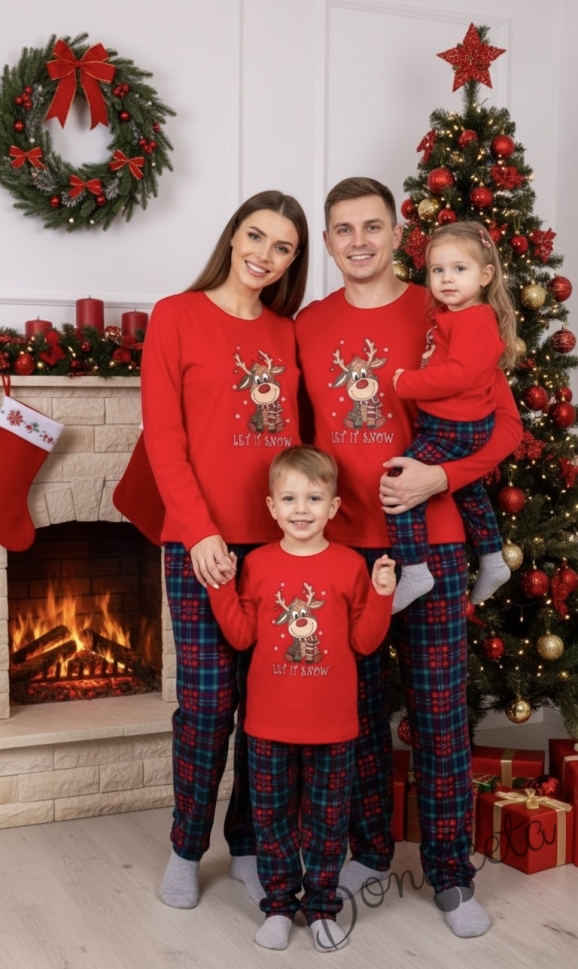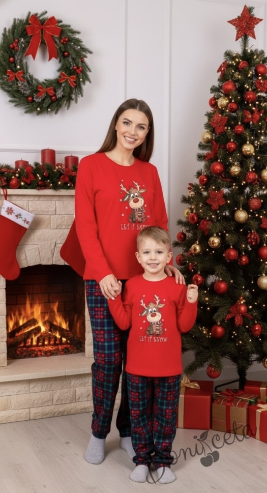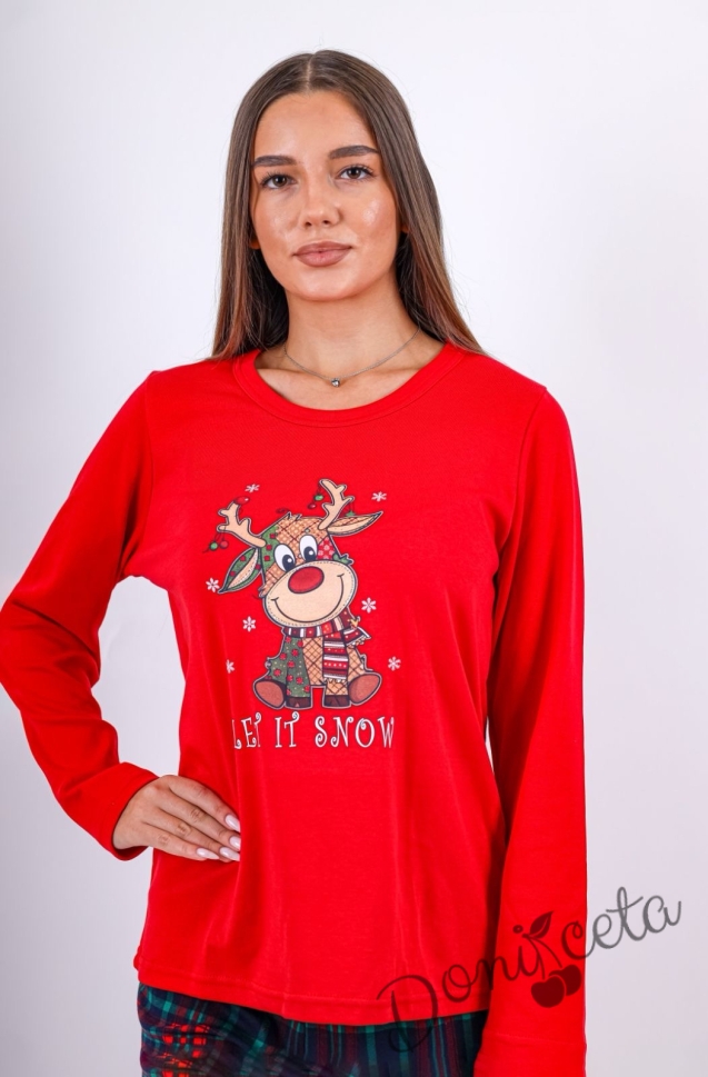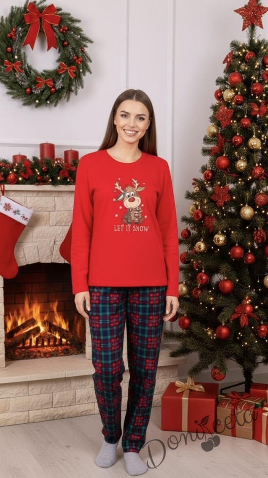 Начало МОМИЧЕТА Дамска коледна пижама в червено с весело еленче и надпис