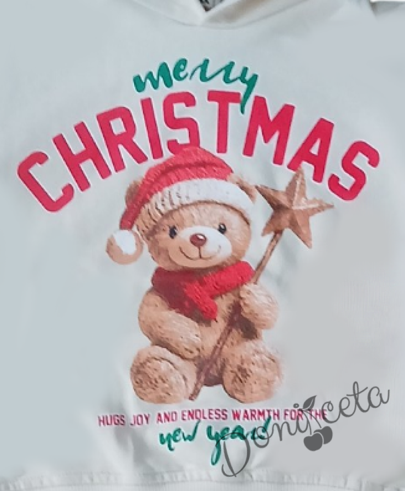 - блуза в бяло с качулка и сладко мече с коледен надпис