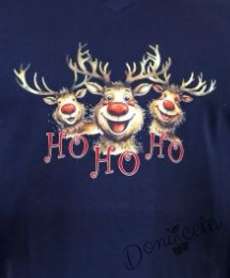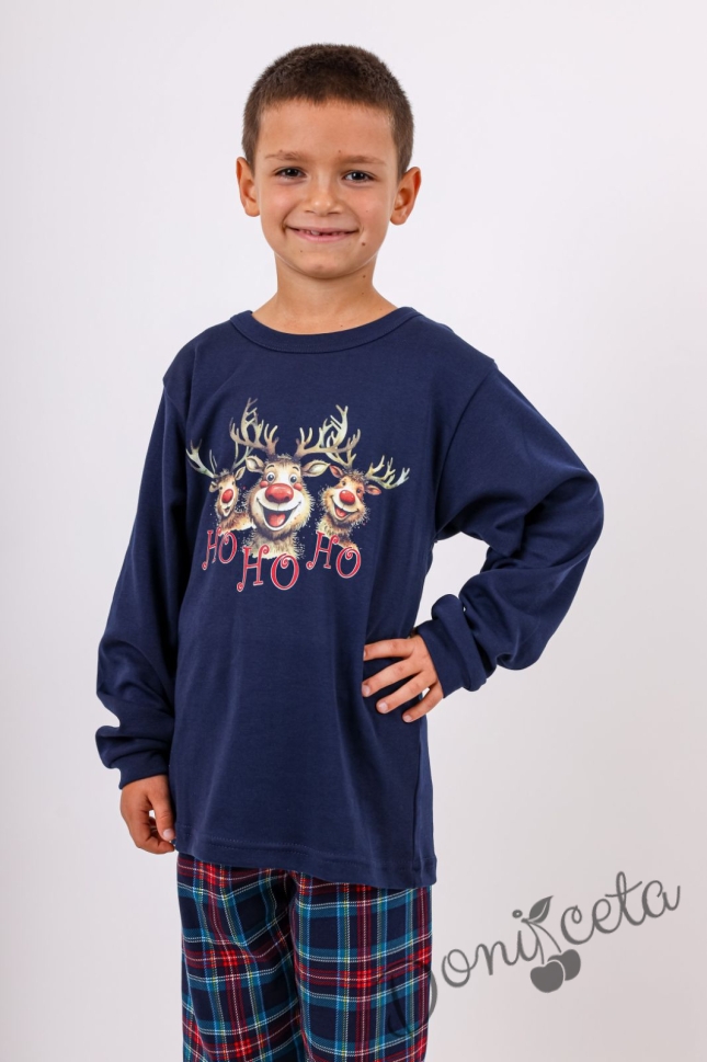 Детска коледна пижама в тъмносиньо с весели еленчета и надпис