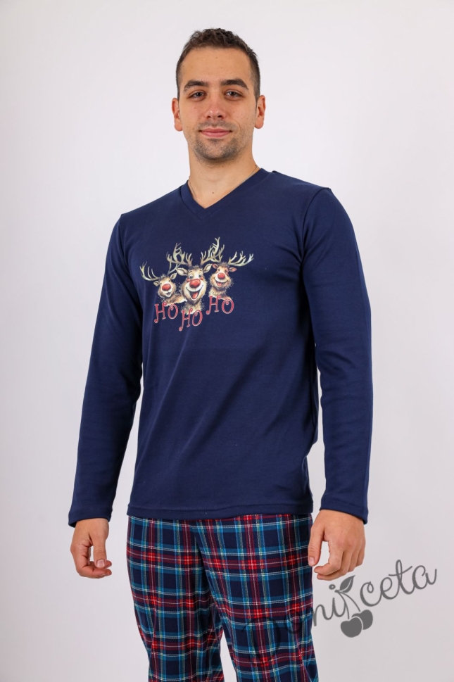 - Прекрасна памучна коледна пижамка в тъмносиньо с еленчета и надпис.