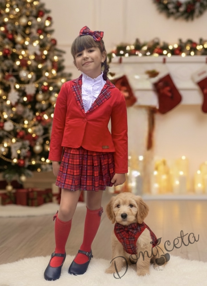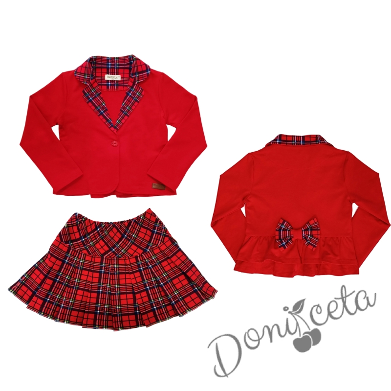 • Прекрасен комплект за момичета от пола плисе в червено каре и елегантно сако в червено с елементи на каре.