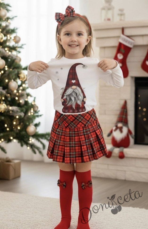 Ватиран коледен детски комплект за момиче в червено от туника скаре и клин