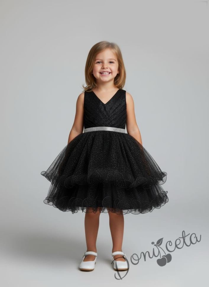 Интересна официална детска/бебешка рокля в черно с блестящ тюл Лиора