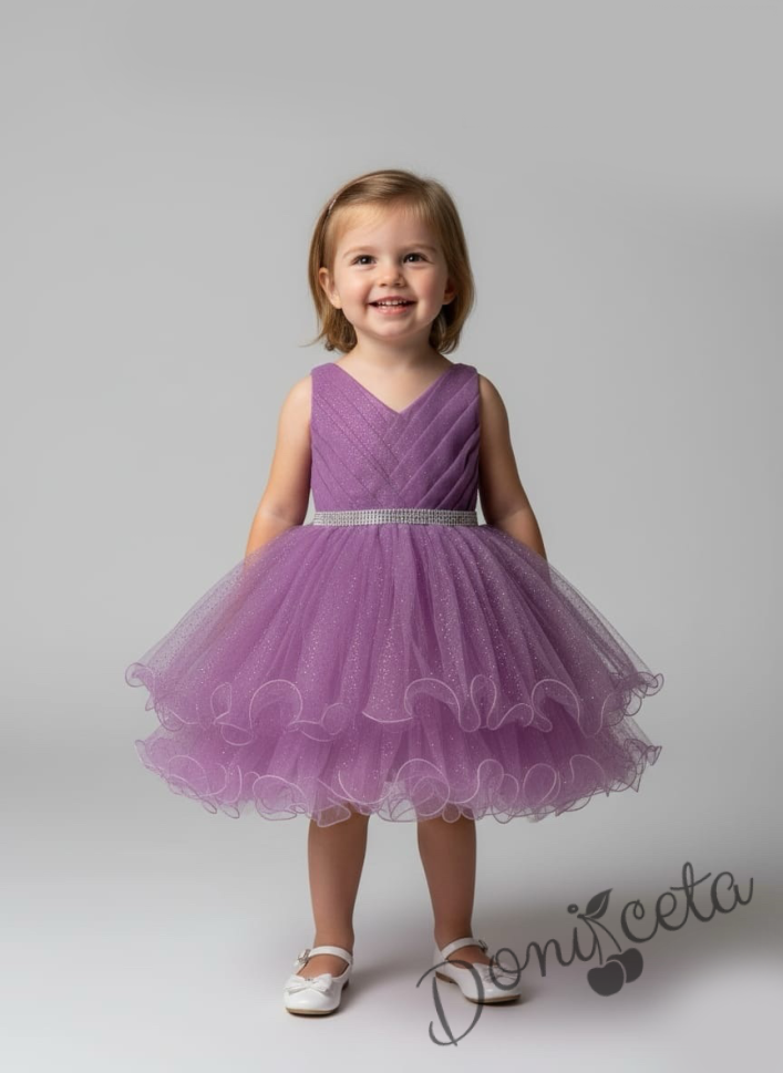 Интересна официална детска/бебешка рокля в лилаво с блестящ тюл Лиора