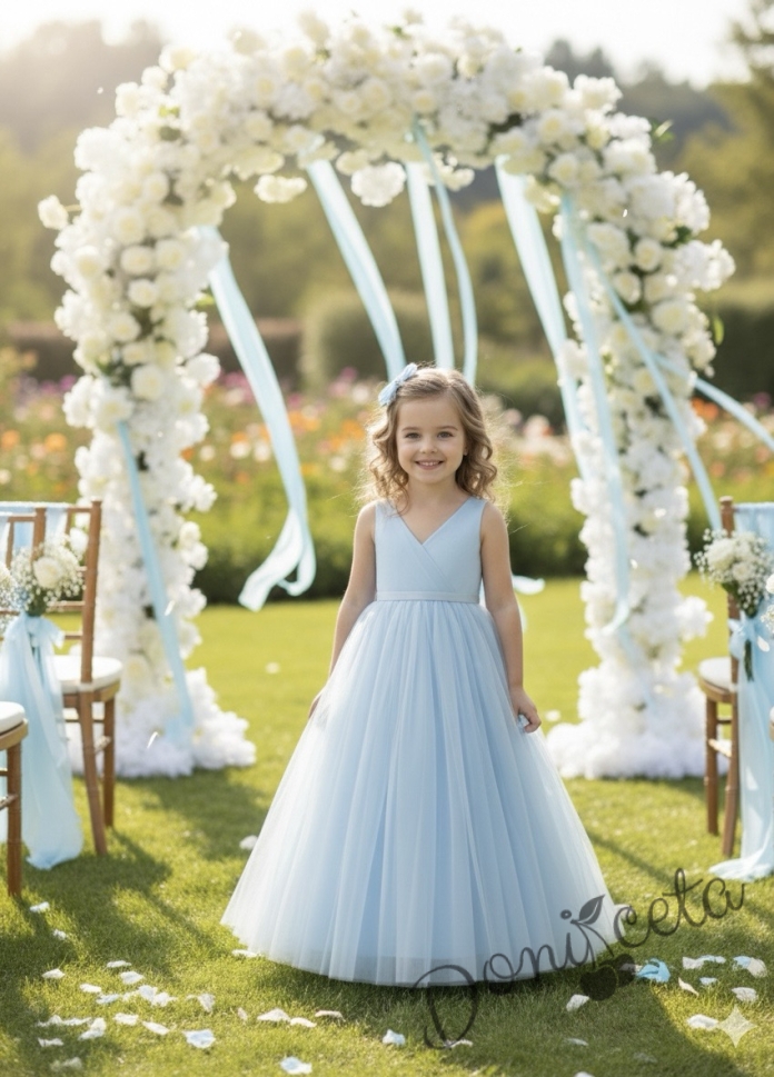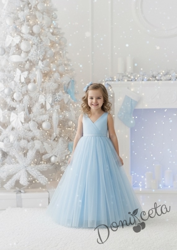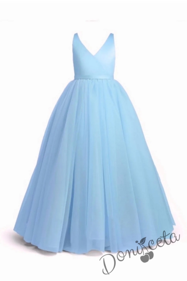 Празничнадетска дълга рокля в светлосиньо без ръкав Марлен от колекция Светлосияна