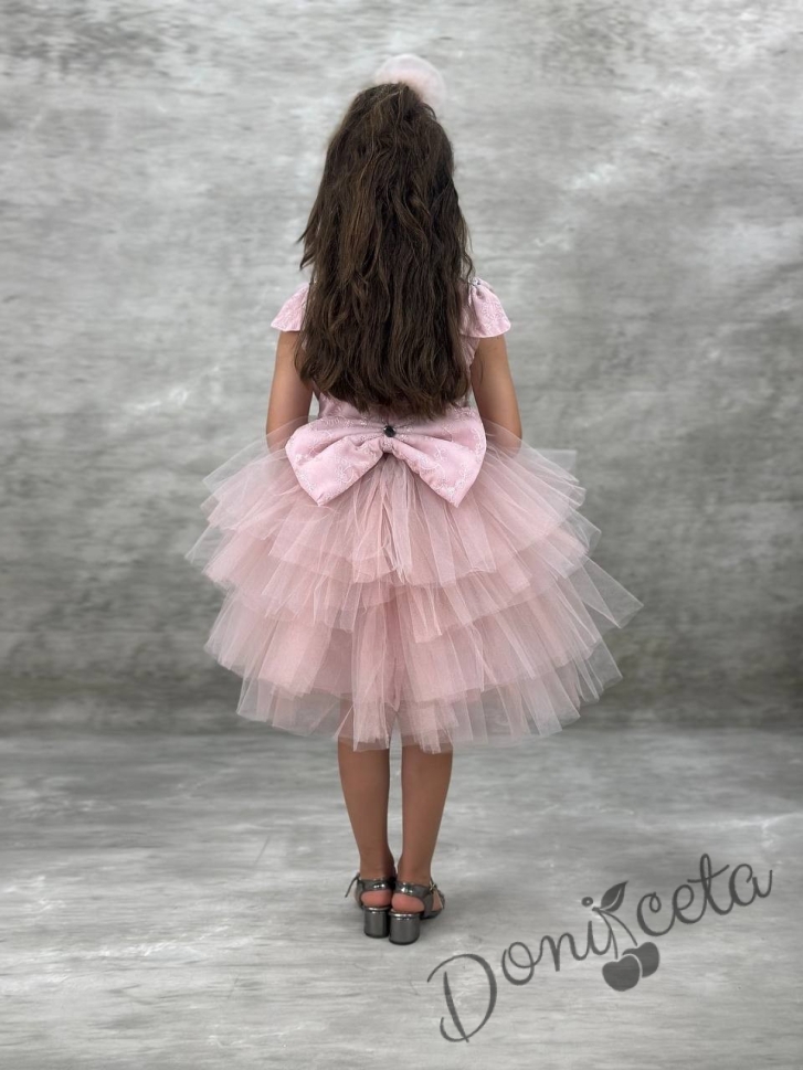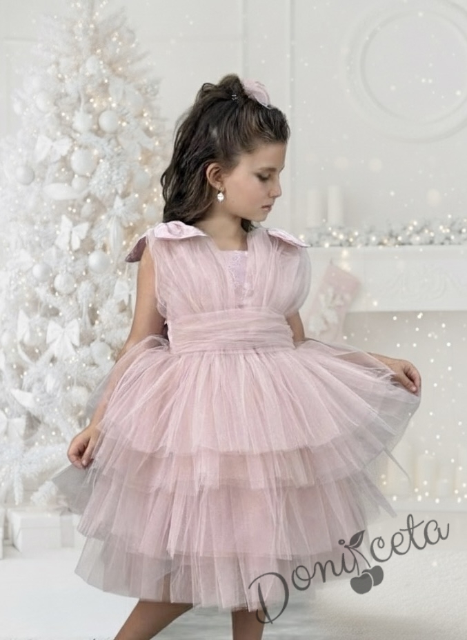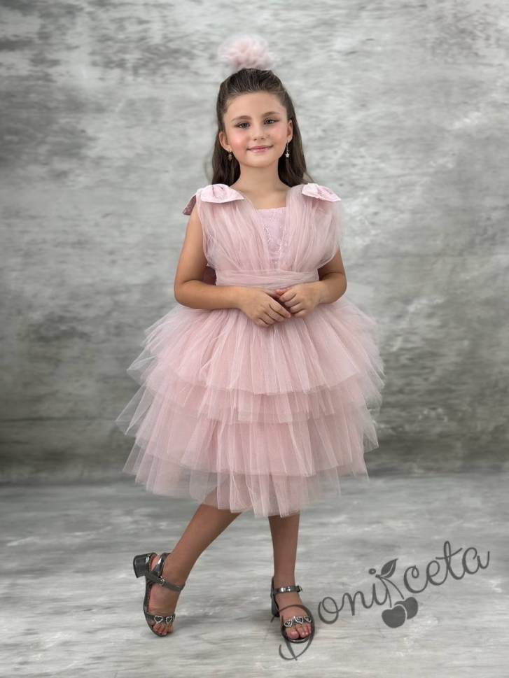Официална къса детска рокля в пепел от рози с тюл Малисия