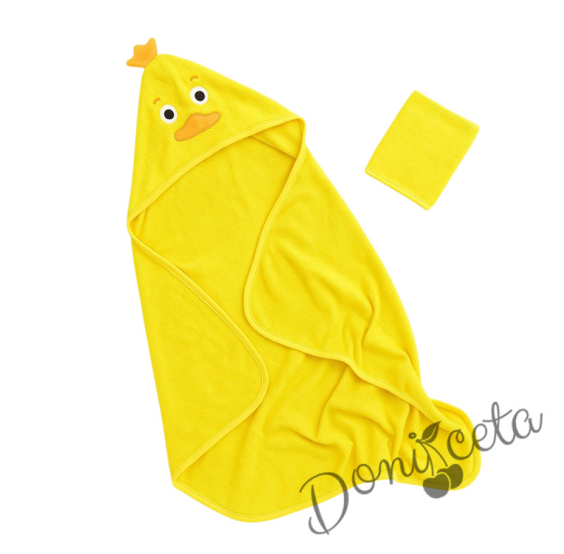 Детска хавлия за баня с качулка с пиленце и ръкавица за баня
