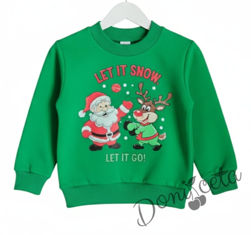 Коледна ватирана блуза с картинка в зелено