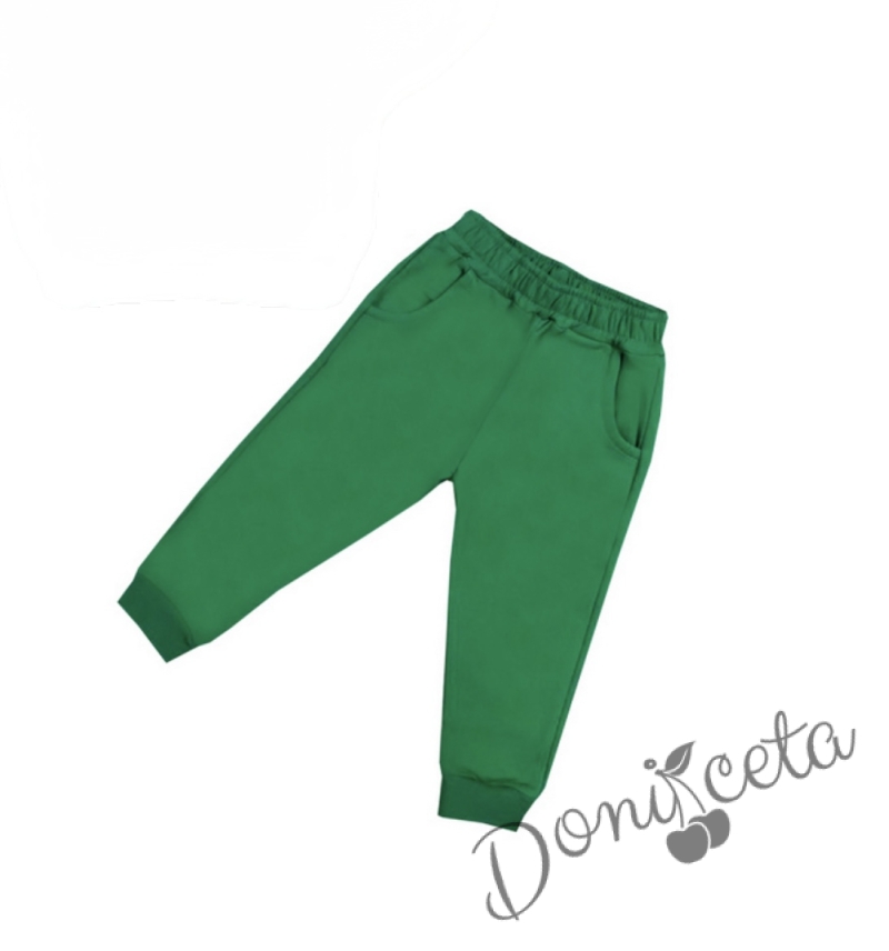Детска коледна блуза за момче/момиче в зелено с картинка на джуджета и надпис