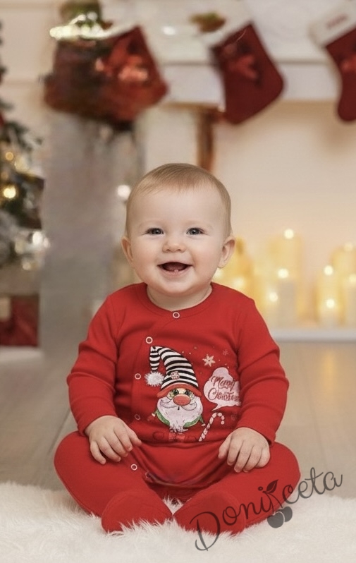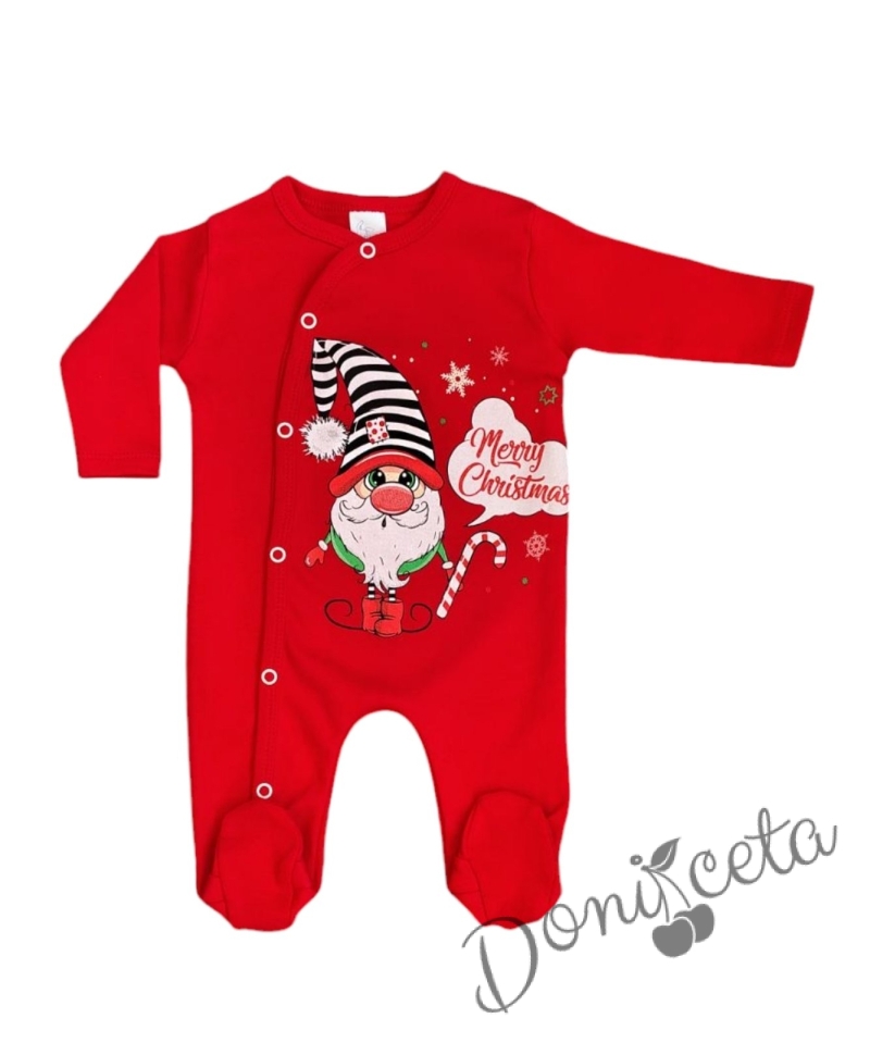 Коледен бебешки гащеризон в червено с джудже