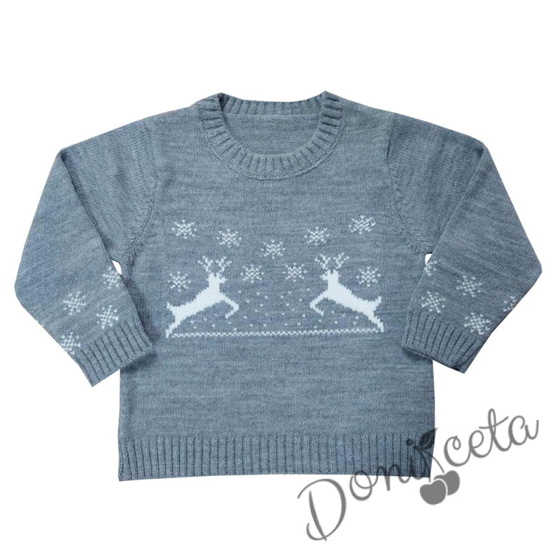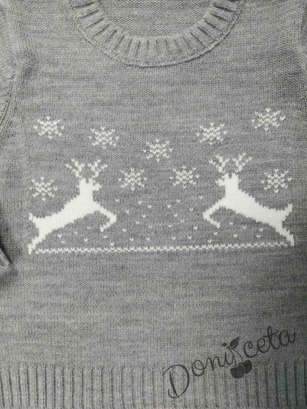 Бебешки коледен комплект от 3 части-боди в бяло с две сърнички и шапка