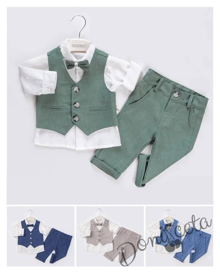 Официален костюм момче от елек в светлосиньо, риза в бяло, панталон и папийонка
