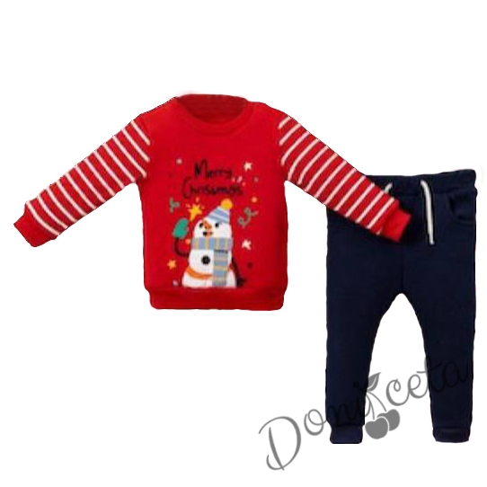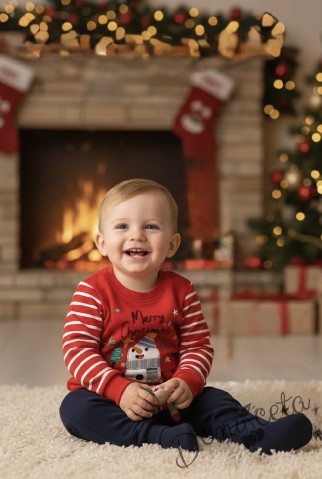 Коледен бебешки ватиран комплект в червено и тъмносиньо със снежен човек