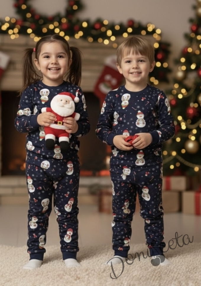 Начало МОМИЧЕТА Коледна детска пижама в тъмносиньо с картинка с коледни мотиви